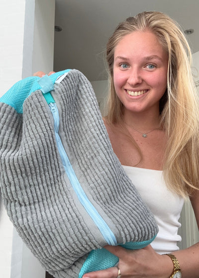 Open the zipper and place your shoes in the CleanBags. Our sturdy laundry bag protects your shoes from wear and tear and other damage during washing.